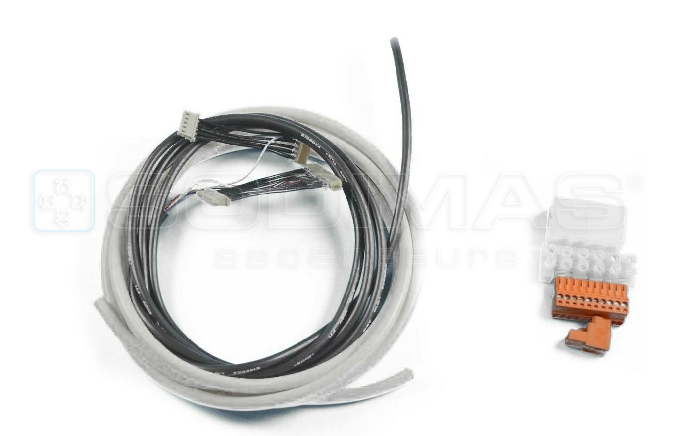 Ensemble complet d'adaptation KONE KRM par MX3 (module tel inclus). Kit de cables, connecteurs et carte interface pour le remplacement d'un tel KONE KRM en conservant boutons, micro HP.